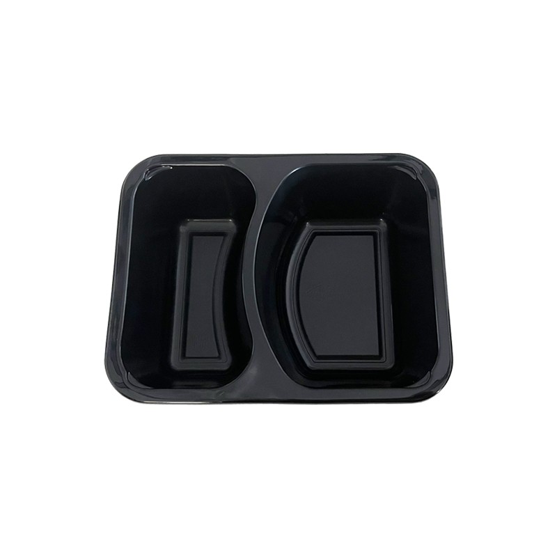 Din placering: Hjem  Produkter  CPET-madbakke  Sort farve CPET plastik madbakke med 2 rum CPET madbeholder